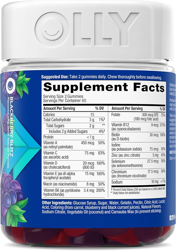 OLLY Men's Multivitamin Gummy, Vitamins A, C, D, E, B, Zinc, BlackBerry Flavor, 65 Day Supply - 130 Count (Packagine May Vary)