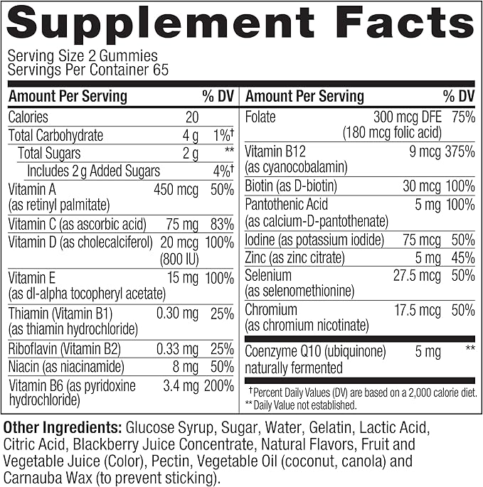 - DELIGHTFULLY TASTY: These men's multivitamins come in Blackberry Blitz flavor with other natural flavors with no synthetic colors or flavors and gluten-free. 130 gummies per bottle (65 day supply)