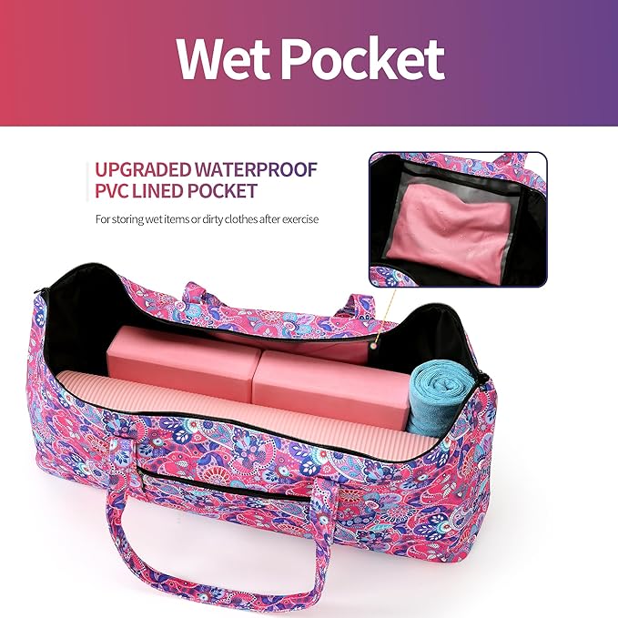 Boulder Bee | Yoga Mat Bag | Large Yoga Mat Carrier with Wet Pocket | Yoga Gifts | Gym Tote Bag for Women