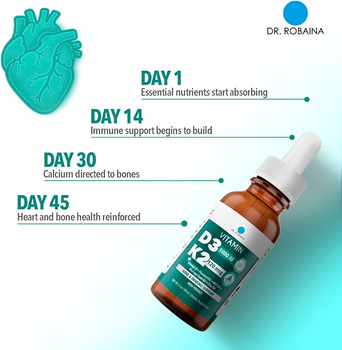 Dr. Robaina Vitamin D3 + K2 Drops – Vegan MCT Oil Liquid Supplement, 5000 IU D3 & 120 mcg MK-7, Sublingual Daily Vitamin D and K