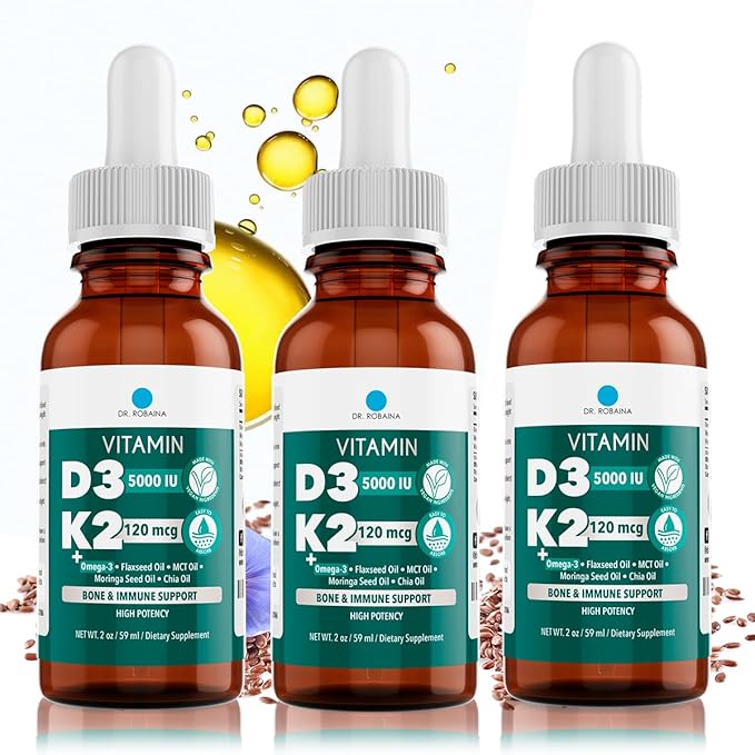 Dr. Robaina Vitamin D3 + K2 Drops – Vegan MCT Oil Liquid Supplement, 5000 IU D3 & 120 mcg MK-7, Sublingual Daily Vitamin D and K