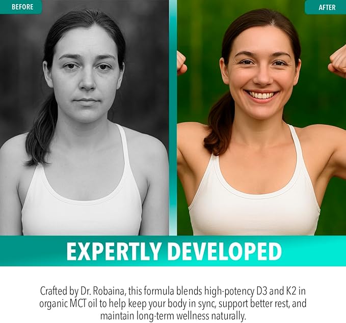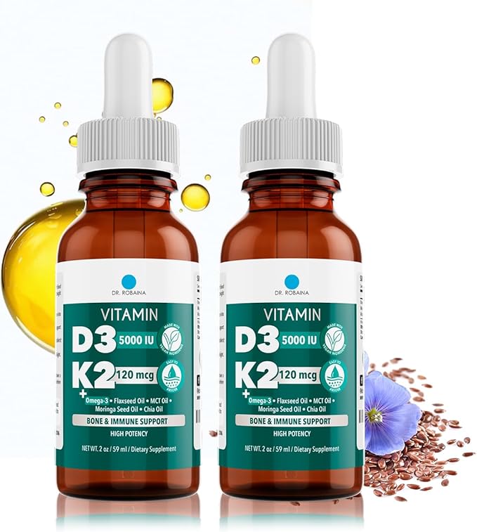 Dr. Robaina Vitamin D3 + K2 Drops – Vegan MCT Oil Liquid Supplement, 5000 IU D3 & 120 mcg MK-7, Sublingual Daily Vitamin D and K