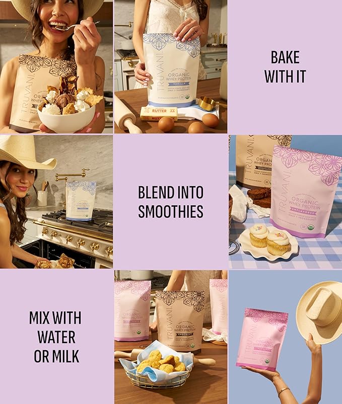 - USDA Organic Whey Protein from Grass-Fed, Pasture-Raised Cows: Truvani Organic Whey is made using milk from grass-fed, pasture-raised cows on certified USDA Organic farms. These cows are never treated with hormones or antibiotics, and the result is a high-quality protein powder that supports ethical sourcing and clean nutrition. No GMOs, no industrial shortcuts, just simple, organic whey from trusted farms.