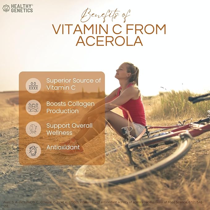 - BETTER VITAMIN C SUPERFRUIT: Healthy Genetics Vitamin C is harvested from Acerola Cherries which has been proven to have higher levels of Vitamin C than Citrus Fruits. *NIH National Library of Medicine; Acerola, an untapped functional Superfruit