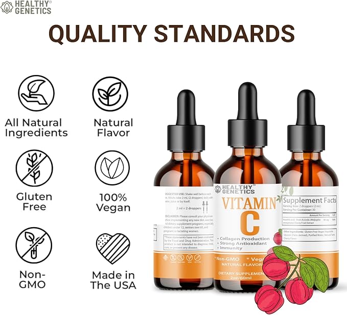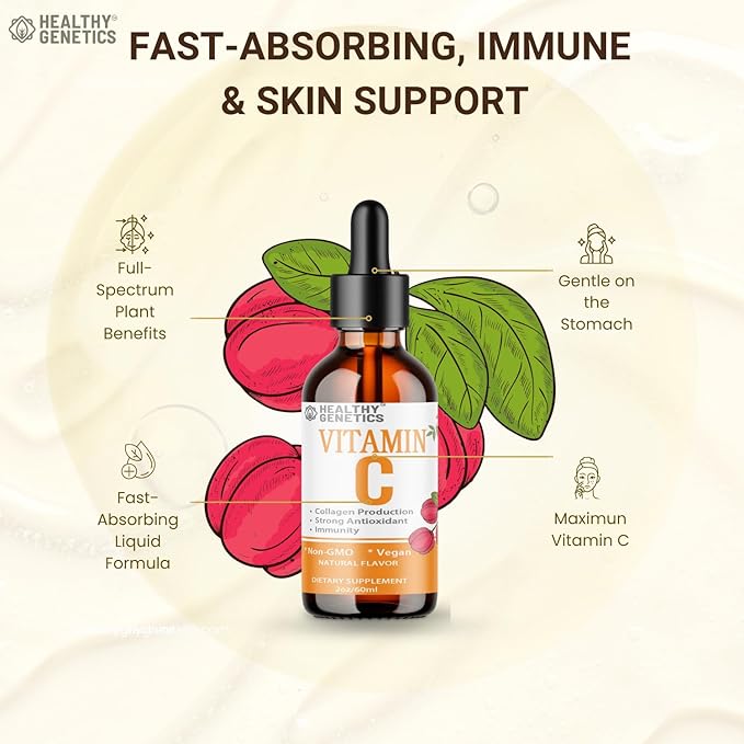 Vitamin C Supplement | Liquid Vitamin C Liquid Drops for Adults & Kids | Acerola Cherry | Immune Support Supplement | Antioxidant | Skin | Vegan | Non-GMO | Gluten Free | 2 Fl