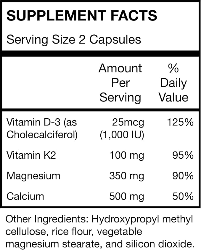 - Primary Supplement Type : Calcium Citrate, Magnesium, Vitamin D3, Vitamin K2