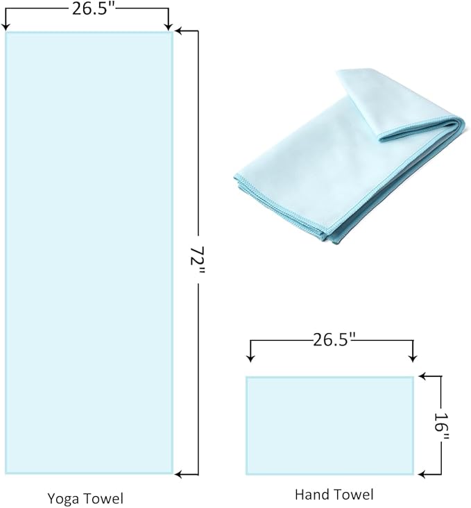- ONE SIZE FOR ALL: 72" (185cm) long X 26.5" (67.3cm) wide yoga towel is the perfect size for almost all yoga mats.You can pack your yoga towel for easy carrying and storage. It can also be used as beach towel, camping towel, beach body wrap, rest towel, blanket, table cloth and bath towel