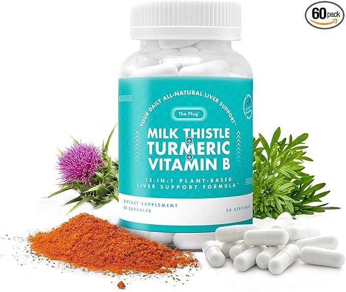 The Plug Liver Cleanse Detox & Repair Pills Milk Thistle Herbal Supplements 60 Capsules Plant Based Minerals Turmeric Vitamin B Dandelion Root for Healthy Digestive Immune Support (30 Servings)