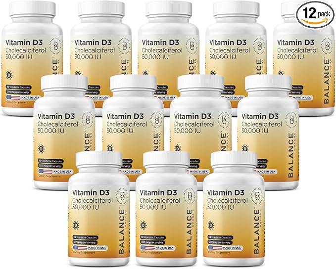 Balancebreens Vitamin D3 50,000 IU, 60 Veggie Capsules - High Potency, Supports Immune & Bone Health - Weekly Once (Pack of 12)
