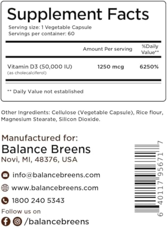 - π§ππ πππ¬ π©ππ§ππ ππ‘: Vitamin D is considered an essential nutrient for healthy bones, teeth, muscle function, and immune system support. You can stay healthy by taking Balance Breen's Vitamin D3 supplements.