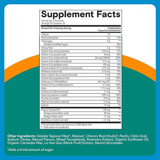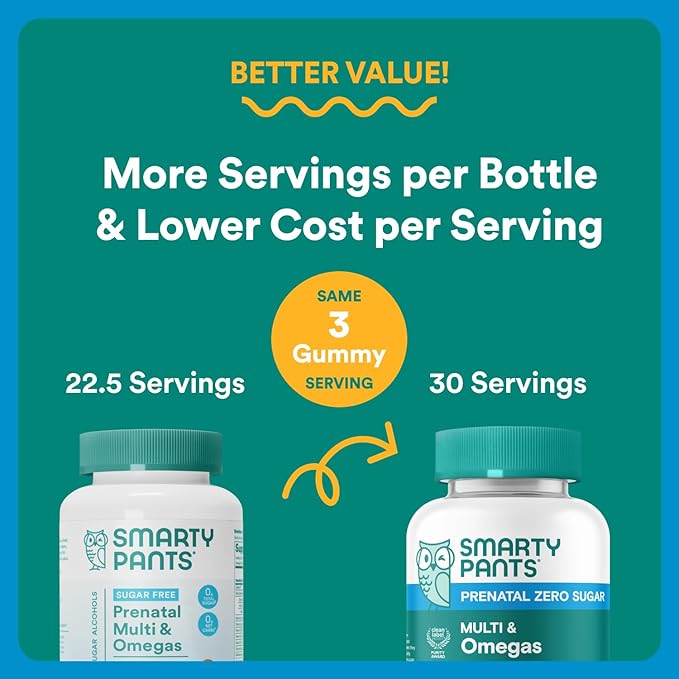 - PREMIUM, RESEARCH-BACKED GUMMY MULTIVITAMIN SUPPLEMENTS FOR WOMEN: SmartyPants Zero Sugar Prenatal Zero Sugar Multi & Omegas contains 46% more nutrients than the leading prenatal multi gummy and is specifically formulated to help fill average nutrient gaps women may have.