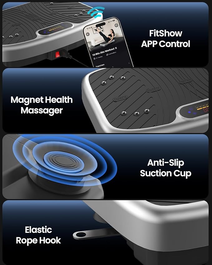 - Smart App Integration: Control your vibration plate exercise machine effortlessly with the app, tracking workouts and adjusting settings. No more manual tweaks—enjoy a seamless, tech-savvy exercise experience with this vibration platform for efficient home fitness.