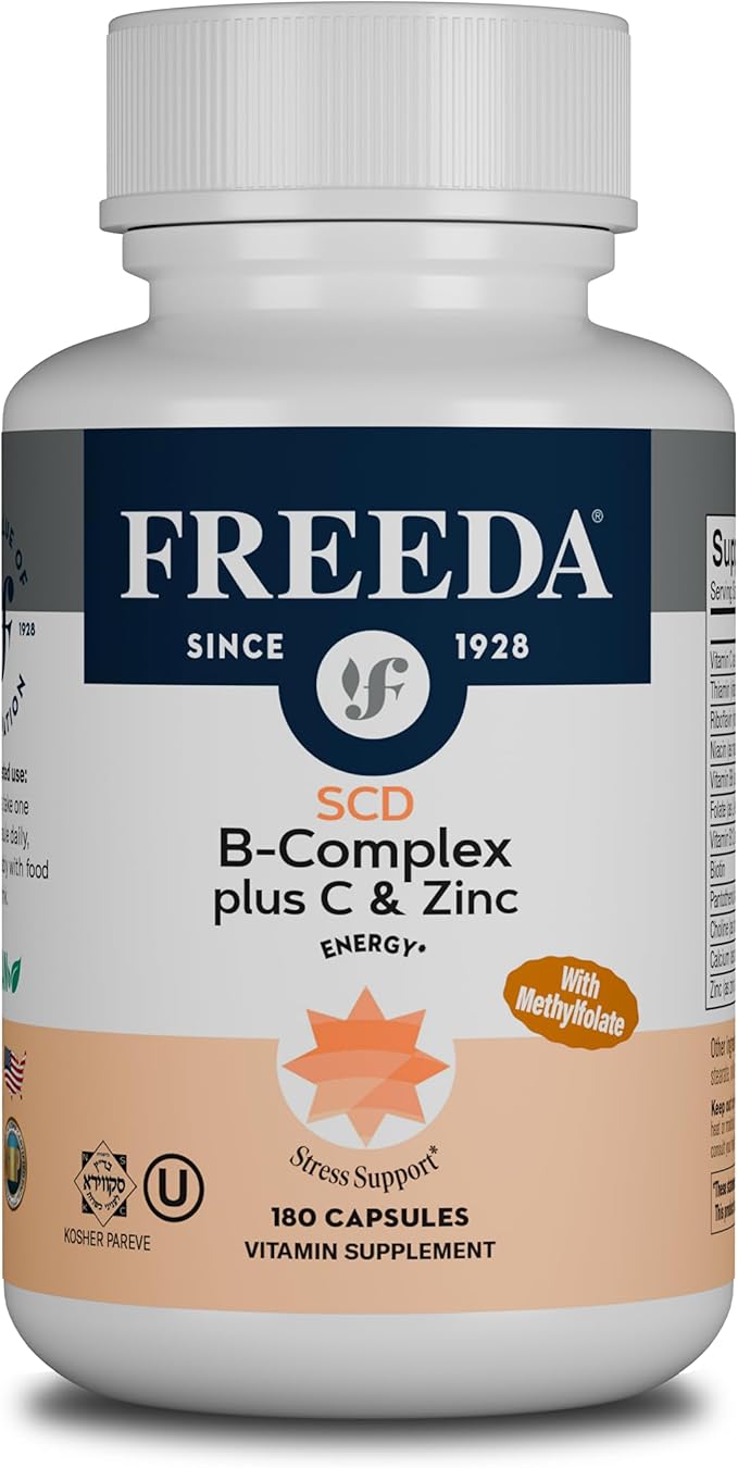 FREEDA SCD B-Complex with Vitamin C & Zinc | Methylfolate & Active B12 | Vegan, Kosher (180 Capsules)