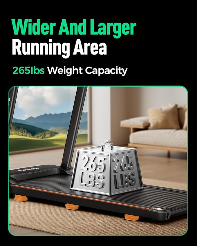 - 【SPACIOUS & COMFORTABLE RUNNING BELT】Treadmills for home with 15.35 x 41.34 inches walking belt, along with 5 layers of non-slip and shock-absorbing system running belt, speed range: 0.5-8.5 mph, the capacity of 265 pounds, to provide you with plenty of space for exercise and a more comfortable running experience!