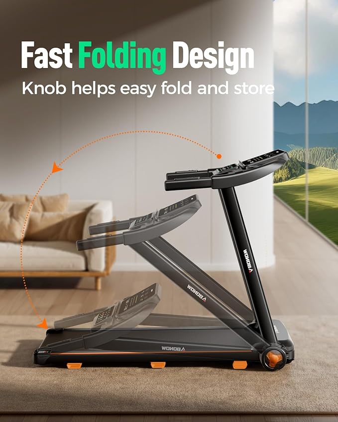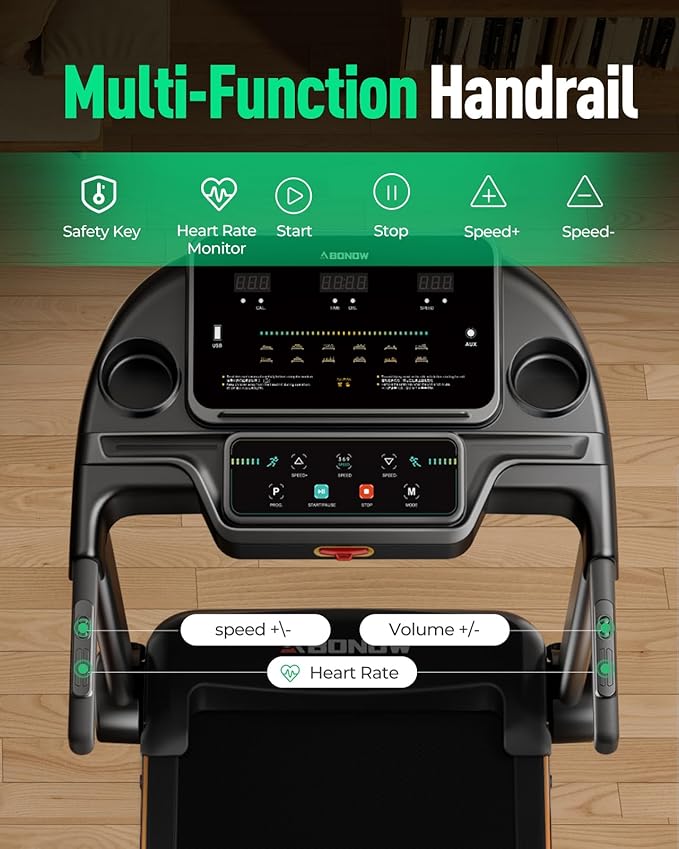 - 【EXCELLENT LED DISPLAY】Abonow LED screen of the folding portable treadmill can clearly display time, speed, distance and calories, real-time grasp of the exercise status, exercise data at a glance.