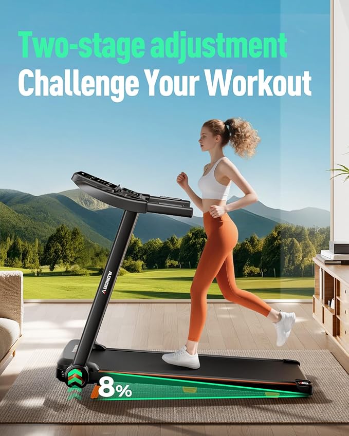 - 【TREADMILL WITH INCLINE 】Manually customize the incline of the treadmill up to 8% to increase the intensity of your workout. Simulate the challenge of going uphill, push yourself to new heights and feel the burn in your leg muscles.