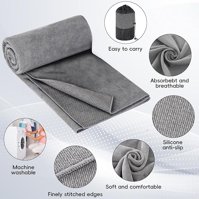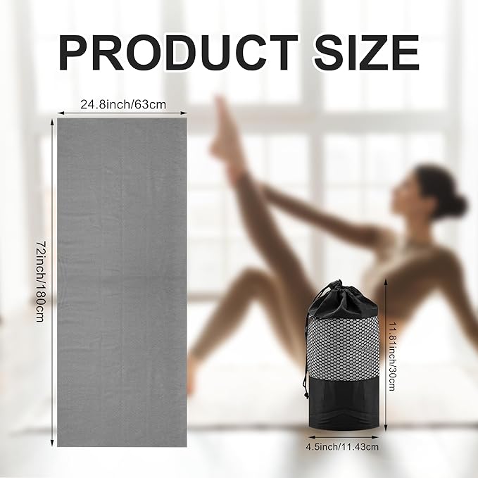 - LIGHTWEIGHT AND PORTABLE: The hot yoga towel non slip measures 72''X24.8'' (183*63cm) , and comes with a durable storage mesh bag for easy storage and carrying. This yoga sweat towel is not only suitable for yoga mats and gyms, but also can be used in outdoor picnics or beach trips; one non slip yoga towel is multi-purpose to meet the diverse needs of home and outdoor