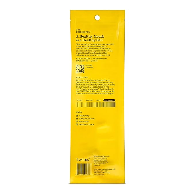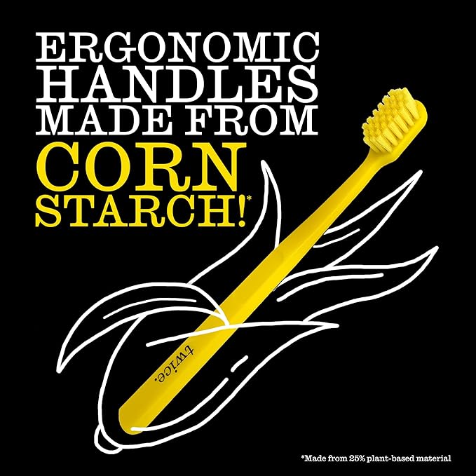 TWICE Oral Wellness Yellow Toothbrush – Extra Soft Bristles, Eco-Friendly Plant-Based Handle, Gentle Cleaning for Sensitive Teeth & Gums, 2 Count