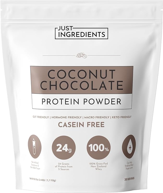 JUST INGREDIENTS Coconut Chocolate Protein Powder – 30-Serving Blend with 100% Grass-Fed Whey & Organic Plant Proteins – Creamy Coconut Cocoa Flavor – Supports Muscle Recovery, Energy*