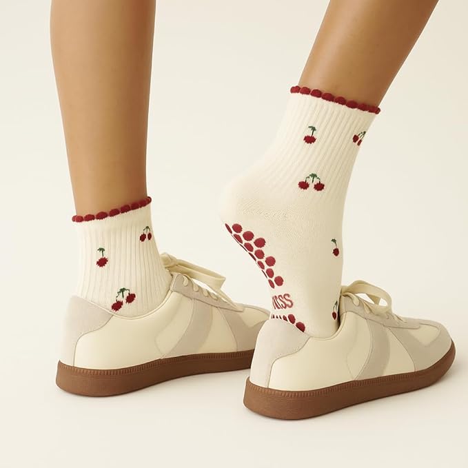 Shapes Studio Crew Half Calf Grip Socks, Cutest Fruits Pilates Socks, Ruffle socks, Non-Slip, Barre Yoga Fitness