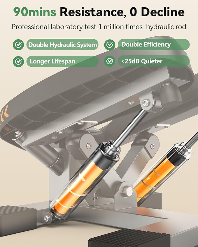 - 【Quiet and No Oil Leakage】This stepper utilizes a smoother and quieter hydraulic system. The dual hydraulic cylinder design ensures stability and increased resistance while reducing noise from friction, and the perfect sealing design makes it oil-free and a better companion for your fat-burning.