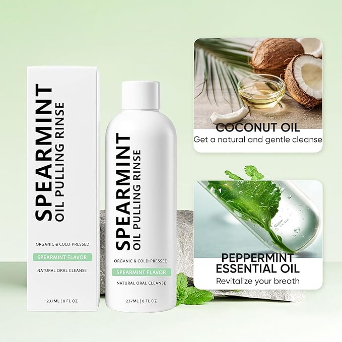Oil Pulling Rinse, Coconut Oil Pulling for Teeth Whitening, Natural Peppermint Mouthwash Oral Rinse for Teeth and Gums, Mint Mouthwash 4 Oz (2)