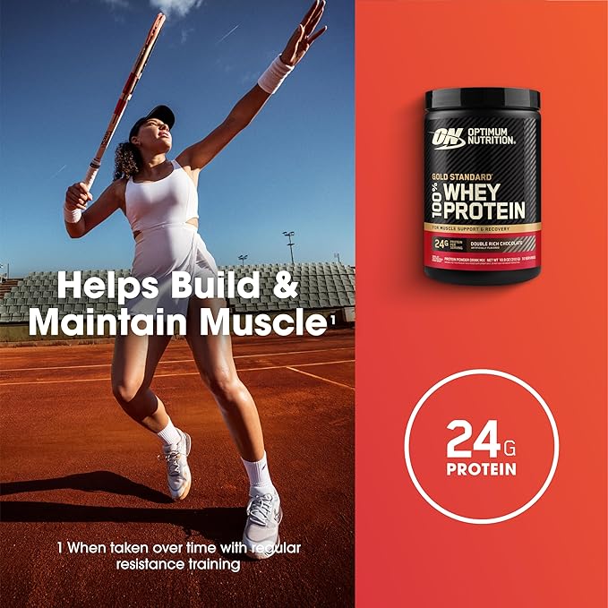 - Whey Protein Isolate primary source- Gold Standard 100% Whey has 24g of protein per scoop to help build and maintain muscle when taken over time with regular resistance training.
