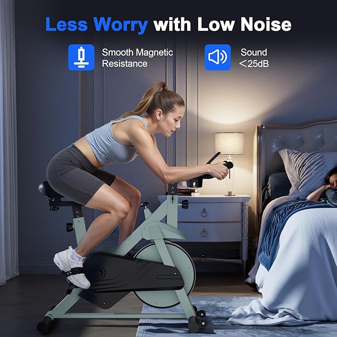 - 【Easy to Assemble】The design of this spin bike is very easy to assemble and it can be installed in no more than 20 minutes. It is equipped with built-in wheels at the bottom and can be easily moved from one room to another. Whether you have a dedicated fitness area or need to store after each use, this bicycle is the best choice